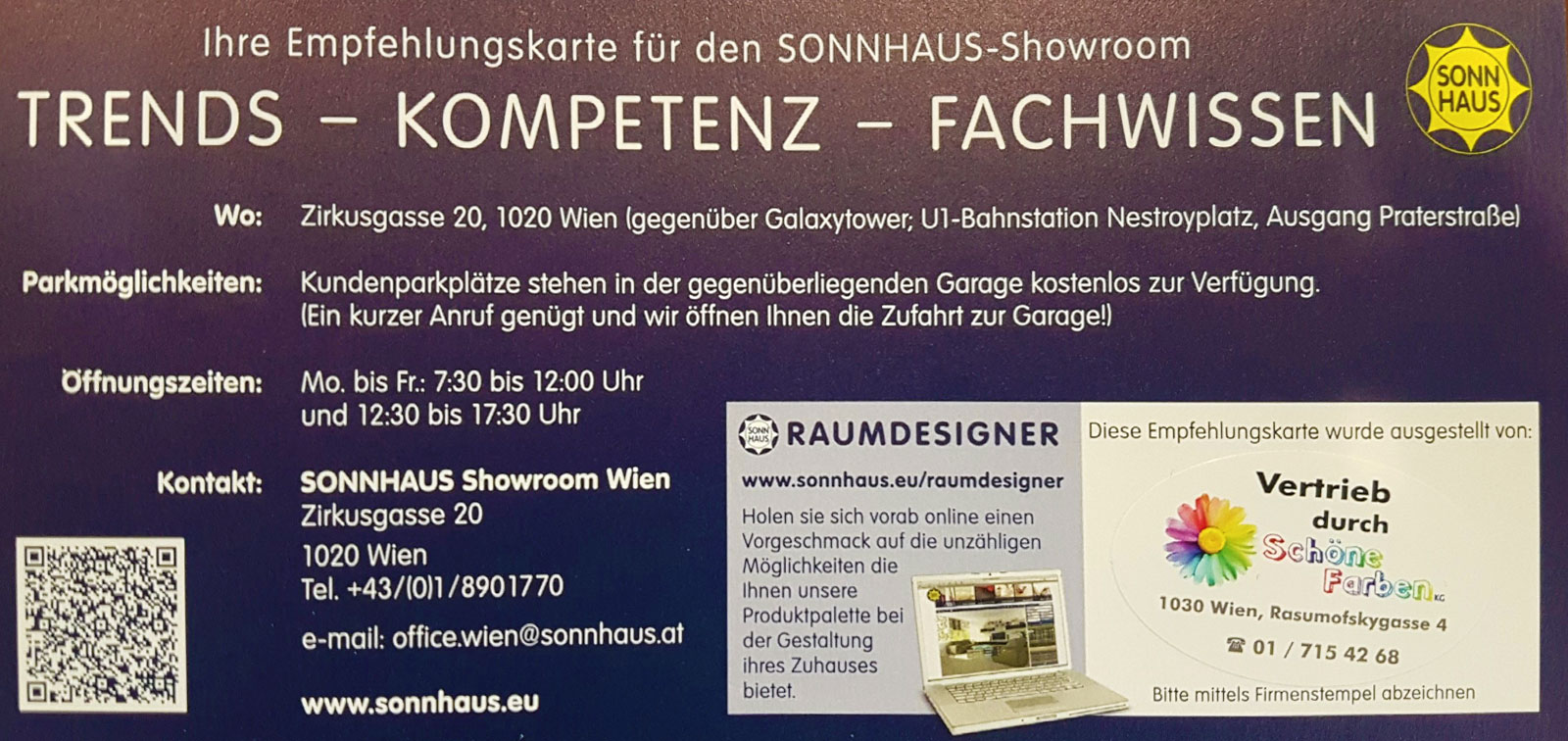 Gerne nehmen wir uns Zeit, Sie persönlich zu beraten. Wir erstellen Ihnen gerne ein individuelles Angebot, abgestimmt auf Ihre Wünsche und auf Ihren Bedarf. Schöne Farben freut sich, Sie im 3. Bezirk in Wien begrüßen zu dürfen!